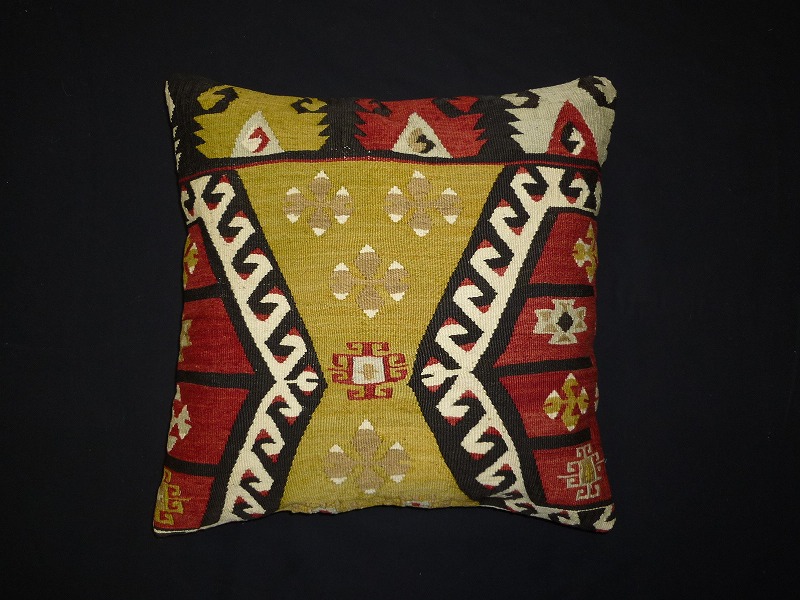 キリムクッションカバー[m759] オールドキリムを使用して作られた、エキゾチックなクッションカバー。オールドキリムの素敵な部分をカットして使用されています。(表面はオールドキリム、裏側はコットンの布地です)お手持ちの家具やキリムと組み合わせてお楽しみください。このタイプのものは、なかなか数が少な く、品質・価格・品揃え共に日本国内屈指であると自負しています。この商品は現地でクリーニングしてから輸入していますのでご安心ください。