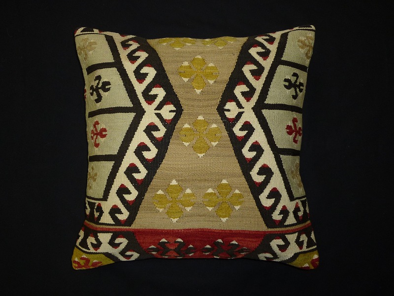 キリムクッションカバー[m765] オールドキリムを使用して作られた、エキゾチックなクッションカバー。オールドキリムの素敵な部分をカットして使用されています。(表面はオールドキリム、裏側はコットンの布地です)お手持ちの家具やキリムと組み合わせてお楽しみください。このタイプのものは、なかなか数が少な く、品質・価格・品揃え共に日本国内屈指であると自負しています。この商品は現地でクリーニングしてから輸入していますのでご安心ください。