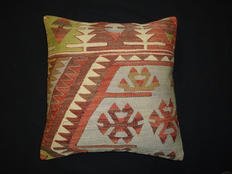 キリムクッションカバー[m783] オールドキリムを使用して作られた、エキゾチックなクッションカバー。オールドキリムの素敵な部分をカットして使用されています。(表面はオールドキリム、裏側はコットンの布地です)お手持ちの家具やキリムと組み合わせてお楽しみください。このタイプのものは、なかなか数が少な く、品質・価格・品揃え共に日本国内屈指であると自負しています。この商品は現地でクリーニングしてから輸入していますのでご安心ください。