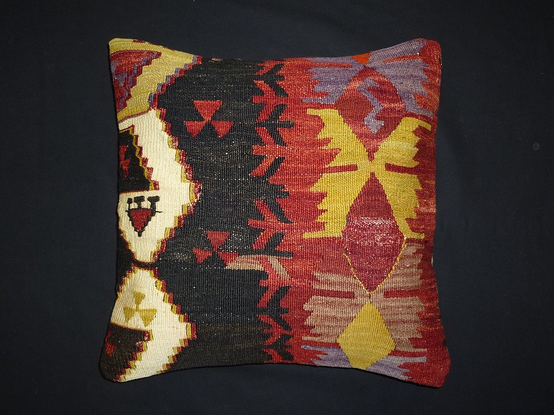 キリムクッションカバー[m820] オールドキリムを使用して作られた、エキゾチックなクッションカバー。オールドキリムの素敵な部分をカットして使用されています。(表面はオールドキリム、裏側はコットンの布地です)お手持ちの家具やキリムと組み合わせてお楽しみください。このタイプのものは、なかなか数が少な く、品質・価格・品揃え共に日本国内屈指であると自負しています。この商品は現地でクリーニングしてから輸入していますのでご安心ください。