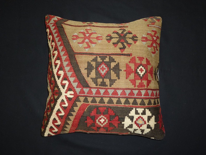 キリムクッションカバー[m821] オールドキリムを使用して作られた、エキゾチックなクッションカバー。オールドキリムの素敵な部分をカットして使用されています。(表面はオールドキリム、裏側はコットンの布地です)お手持ちの家具やキリムと組み合わせてお楽しみください。このタイプのものは、なかなか数が少な く、品質・価格・品揃え共に日本国内屈指であると自負しています。この商品は現地でクリーニングしてから輸入していますのでご安心ください。