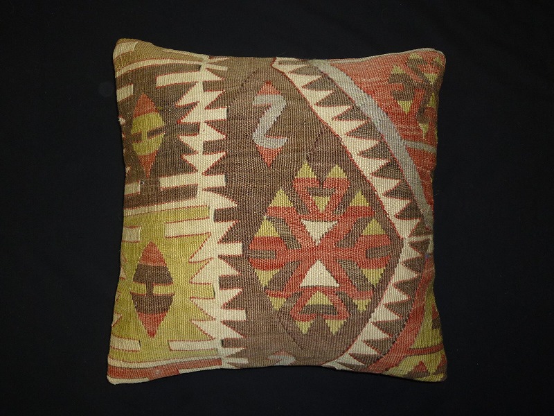 キリムクッションカバー[m850] オールドキリムを使用して作られた、エキゾチックなクッションカバー。オールドキリムの素敵な部分をカットして使用されています。(表面はオールドキリム、裏側はコットンの布地です)お手持ちの家具やキリムと組み合わせてお楽しみください。このタイプのものは、なかなか数が少な く、品質・価格・品揃え共に日本国内屈指であると自負しています。この商品は現地でクリーニングしてから輸入していますのでご安心ください。