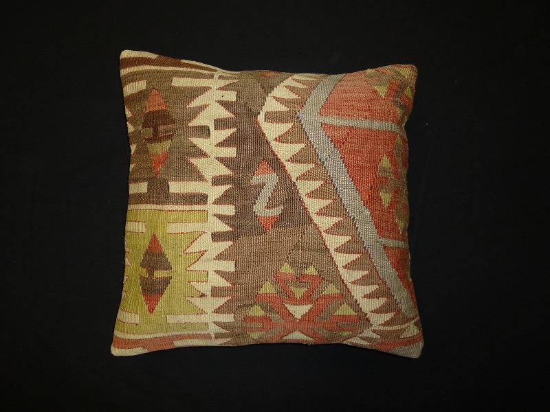 キリムクッションカバー[m858] オールドキリムを使用して作られた、エキゾチックなクッションカバー。オールドキリムの素敵な部分をカットして使用されています。(表面はオールドキリム、裏側はコットンの布地です)お手持ちの家具やキリムと組み合わせてお楽しみください。このタイプのものは、なかなか数が少な く、品質・価格・品揃え共に日本国内屈指であると自負しています。この商品は現地でクリーニングしてから輸入していますのでご安心ください。