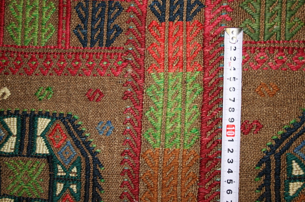 50~60年前のものです。繊細な織りと、大胆なデザインデと色彩。一枚あるだけで、オリジナリティあふれる空間をつくり出してくれます。本キリムに使用の糸は、すべて草木染めです。機械織りとは異なり、暖かみが伝わるハンドメイドです。