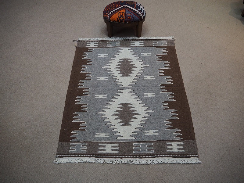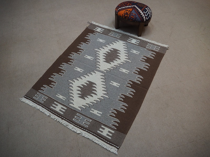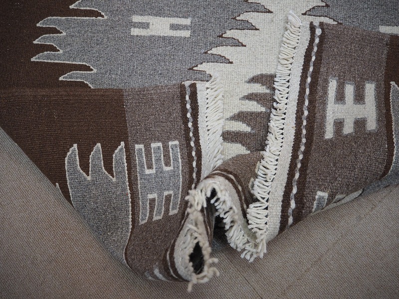 染めていないナチュラルな羊の毛の色だけを使って織られたモノトーンのキリム。こげ茶色、茶色、グレー、ベージュ、オフホワイトの組み合わせて、伝統的なキリムになっています。モダンなお部屋にもあわせやすい人気のカラーです。織りは、細かく隙間のない状態になっています。機械織りとは異なり、暖かみが伝わるハンドメイド。このタイプのものは、なかなか数が少なく、品質・価格・品揃え共に、日本国内屈指であると自負しています。