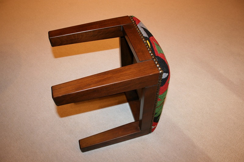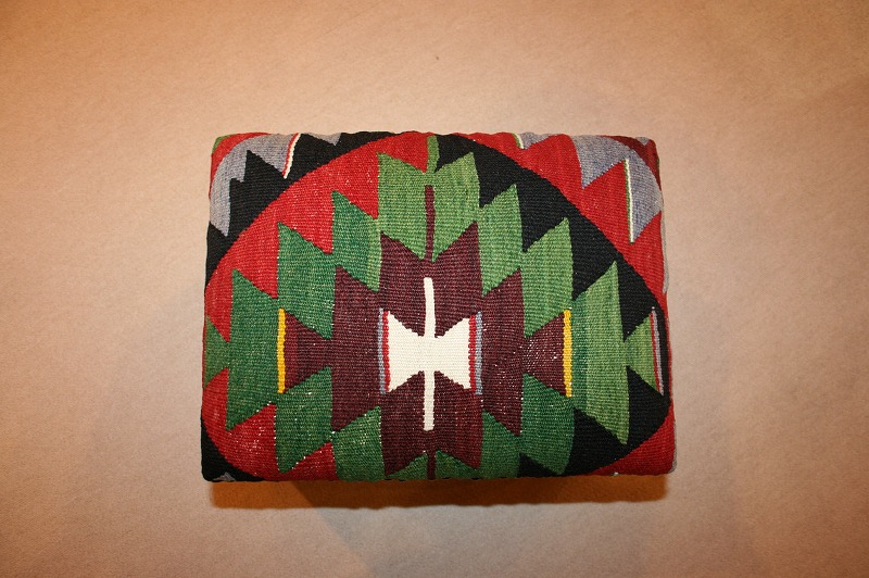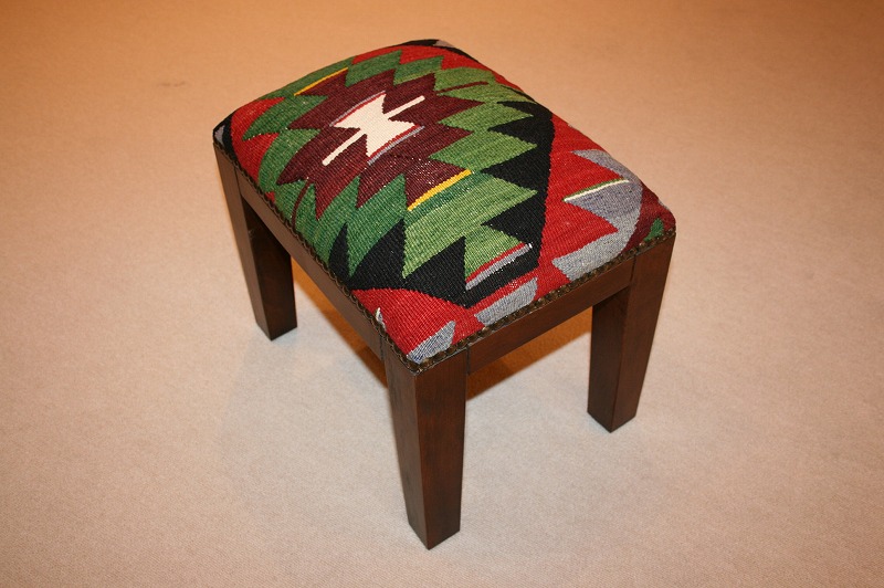 平織りの敷物・オールドキリムを張地にした椅子・オットマンチェアー。手織りの敷物からカットするため、すべて一点ものです。