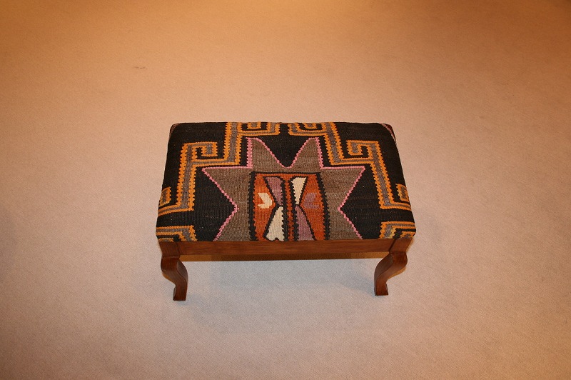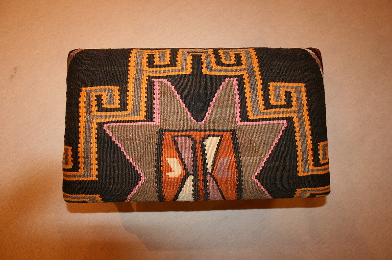 平織りの敷物・オールドキリムを張地にした椅子・オットマンチェアー。手織りの敷物からカットするため、すべて一点ものです。