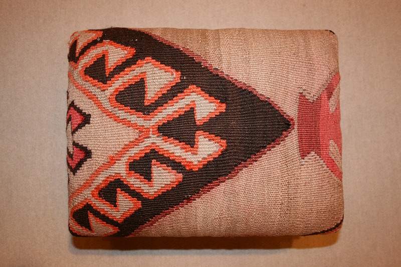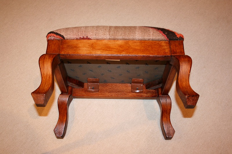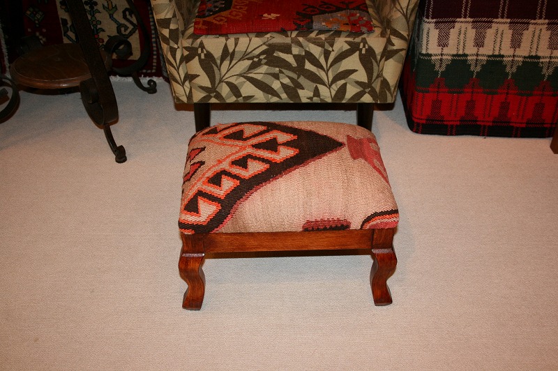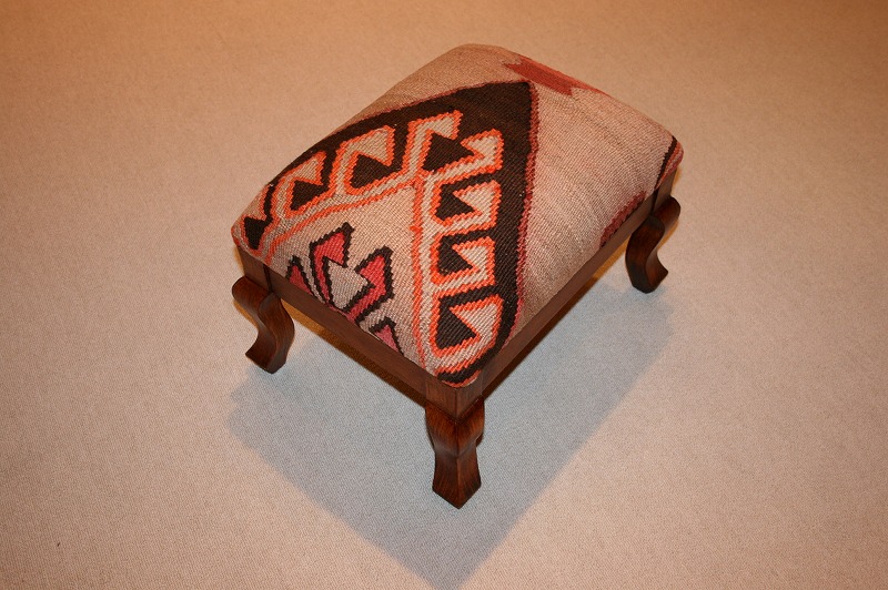 平織りの敷物・オールドキリムを張地にした椅子・オットマンチェアー。手織りの敷物からカットするため、すべて一点ものです。