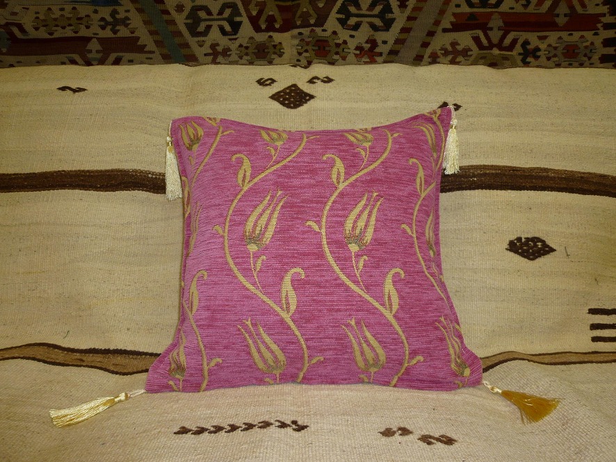 オスマントルコの伝統紋様を、あなたのお部屋に!このシリーズに使用している布地は、キリムではありませんが古くからトルコに伝わっている素晴らしいデザ インを、クッションカバーに取り入れたファブリック製品です。エキゾチックなトルコ製のクッションカバーを、あなたのお部屋に!古くからトルコに伝わる、 伝統のデザイン・モチーフを織り込んであります。デザインの豪華さ、手軽に洗濯のできる丈夫さ、そしてこのリーズナブルなプライス、どれをとっても大満 足!