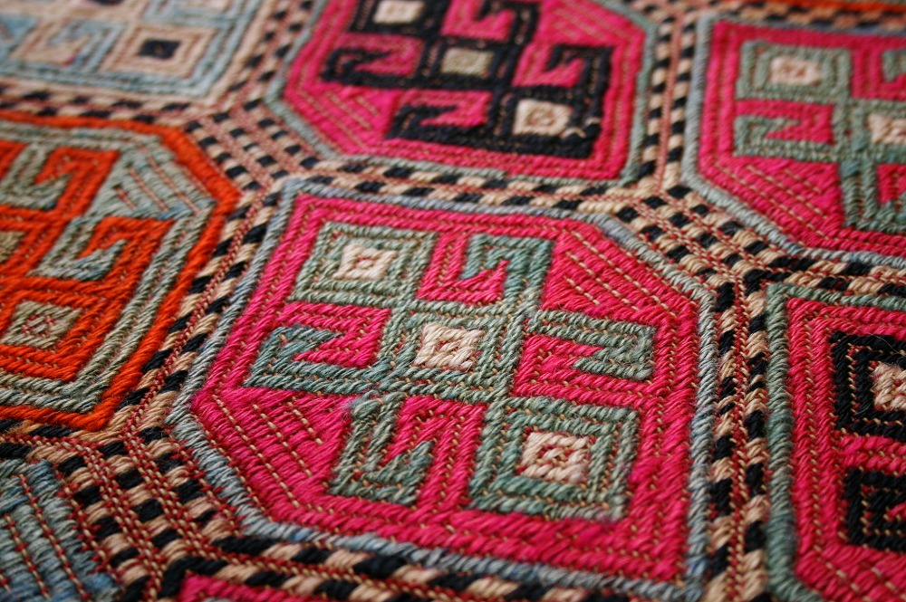 織ってから30~40年経っていますがきれいな状態を保っています。古いキリムですので、色に味があり、手触りもやわらかくなってきています。サイズ的に壁に飾ってもいい感じです。