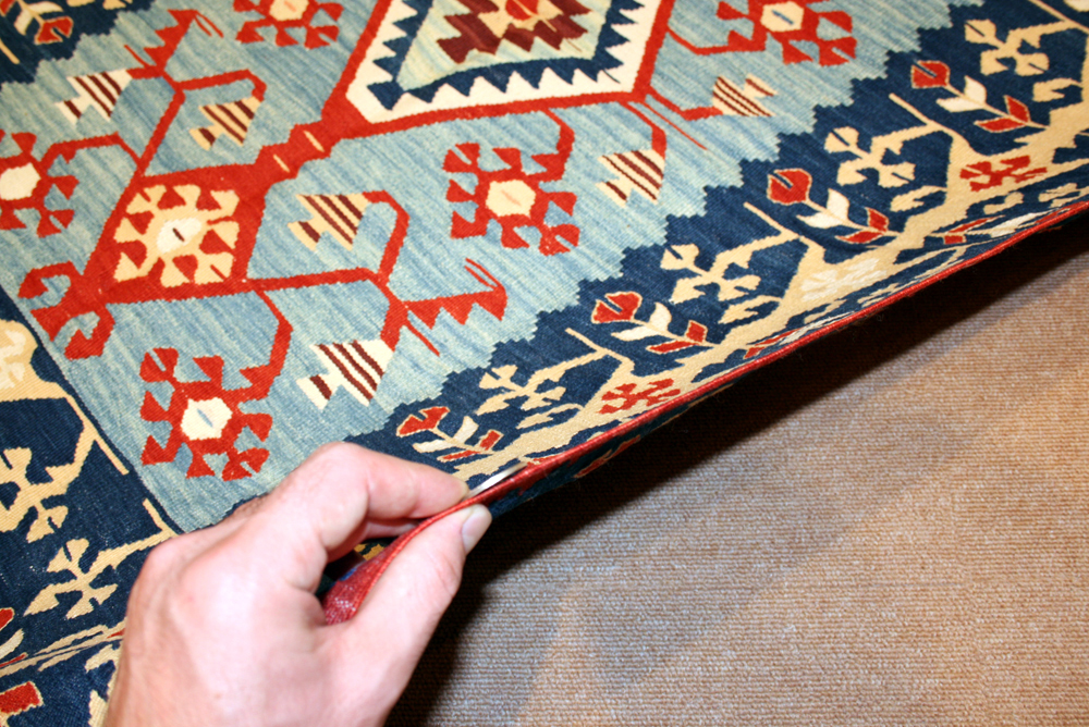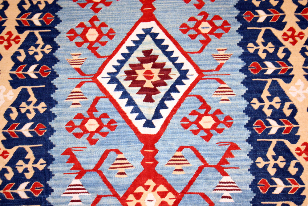 細かな作業で織り上げた、スーパーファインキリム。手触りも非常に柔らかく、使うほどにアンティーク感が出て、味わい深い面持に。本キリムに使用の糸は、すべて草木染めです。機械織りとは異なり、暖かみが伝わるハンドメイド。