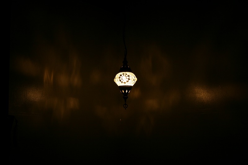 豪華で美麗なあかりを、あなたのお部屋に!古くからトルコに伝わる、伝統のデザイン、モザイクタイルを手作業で施したハンドメイド。そしてこのリーズナブルなプライス、どれをとっても大満足!お隣に差がつく、世界に1つの逸品です。ランプの付け方について