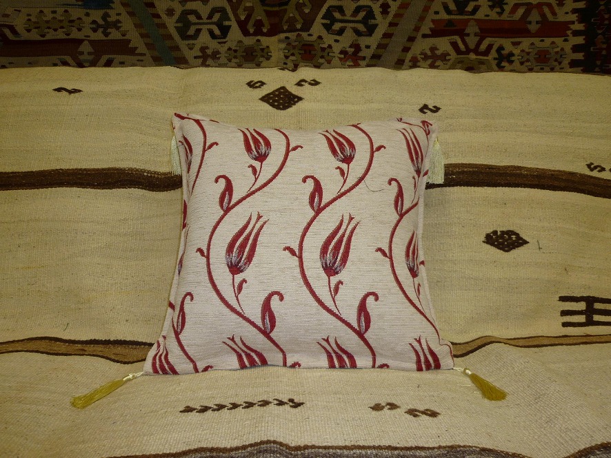 オスマントルコの伝統紋様を、あなたのお部屋に!このシリーズに使用している布地は、キリムではありませんが古くからトルコに伝わっている素晴らしいデザ インを、クッションカバーに取り入れたファブリック製品です。エキゾチックなトルコ製のクッションカバーを、あなたのお部屋に!古くからトルコに伝わる、 伝統のデザイン・モチーフを織り込んであります。デザインの豪華さ、手軽に洗濯のできる丈夫さ、そしてこのリーズナブルなプライス、どれをとっても大満 足!