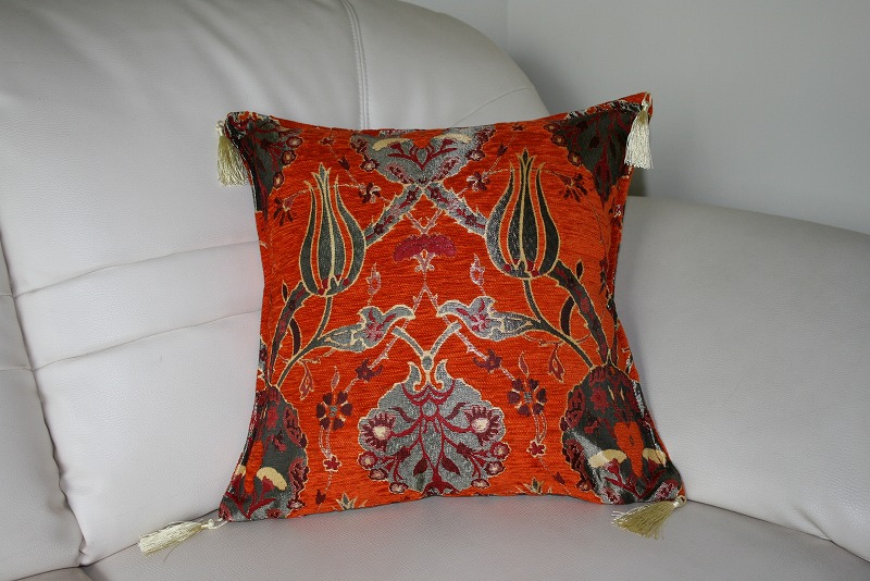 オスマントルコの伝統紋様を、あなたのお部屋に!このシリーズに使用している布地は、キリムではありませんが古くからトルコに伝わっている素晴らしいデザ インを、クッションカバーに取り入れたファブリック製品です。エキゾチックなトルコ製のクッションカバーを、あなたのお部屋に!古くからトルコに伝わる、 伝統のデザイン・モチーフを織り込んであります。デザインの豪華さ、手軽に洗濯のできる丈夫さ、そしてこのリーズナブルなプライス、どれをとっても大満 足!