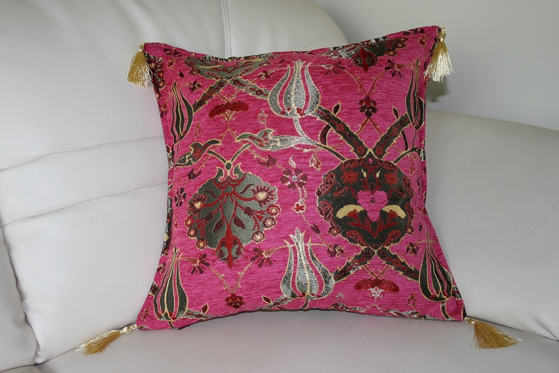 オスマントルコの伝統紋様を、あなたのお部屋に!このシリーズに使用している布地は、キリムではありませんが古くからトルコに伝わっている素晴らしいデザ インを、クッションカバーに取り入れたファブリック製品です。エキゾチックなトルコ製のクッションカバーを、あなたのお部屋に!古くからトルコに伝わる、 伝統のデザイン・モチーフを織り込んであります。デザインの豪華さ、手軽に洗濯のできる丈夫さ、そしてこのリーズナブルなプライス、どれをとっても大満 足!