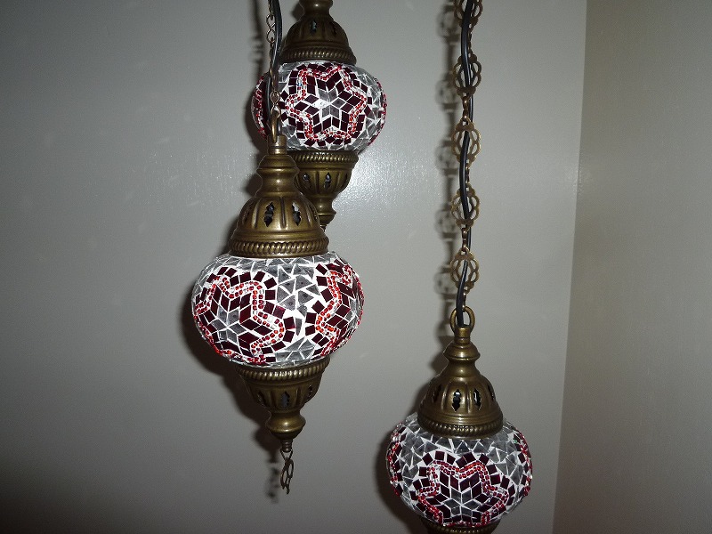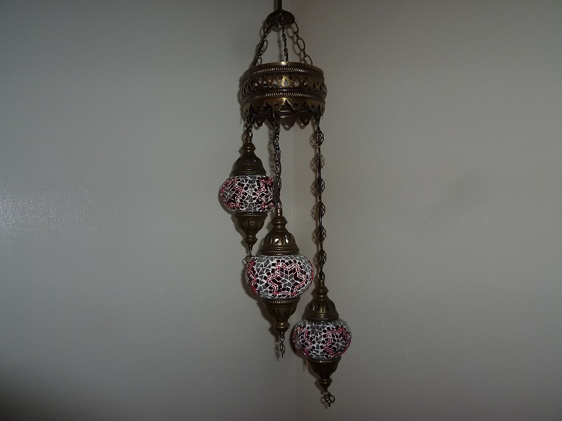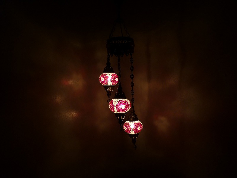 世界中のセレブも愛用、エキゾチックなトルコ製のモザイクランプシャンデリア3灯。