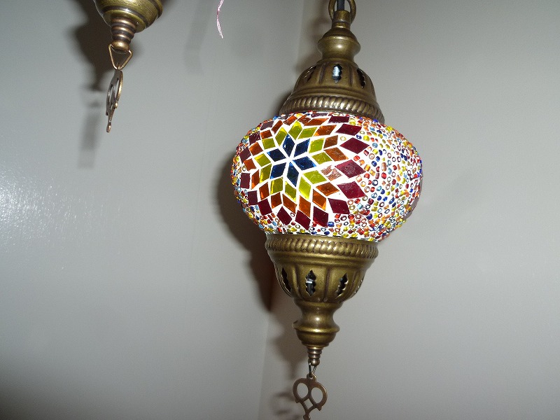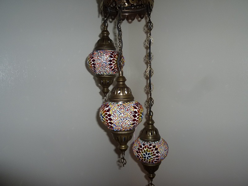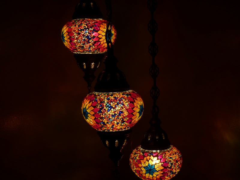 世界中のセレブも愛用、エキゾチックなトルコ製のモザイクランプシャンデリア3灯。