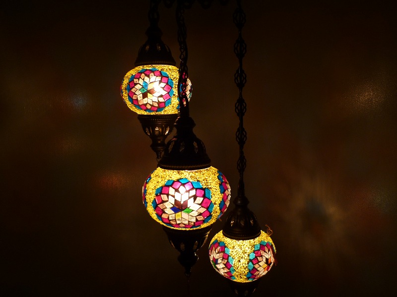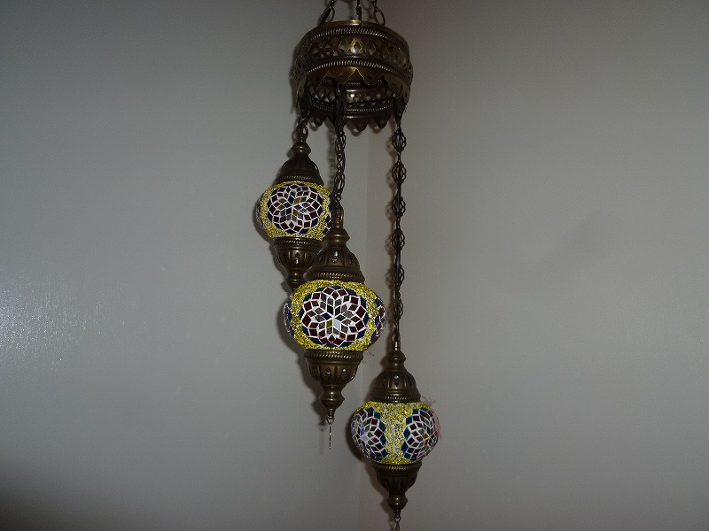世界中のセレブも愛用、エキゾチックなトルコ製のモザイクランプシャンデリア3灯。