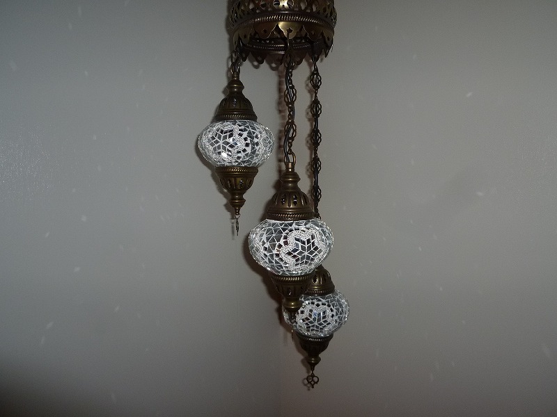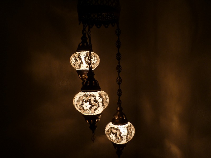 世界中のセレブも愛用、エキゾチックなトルコ製のモザイクランプシャンデリア3灯。
