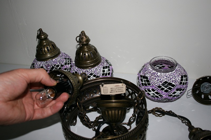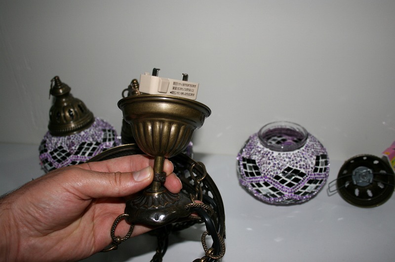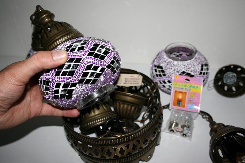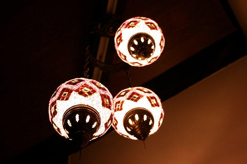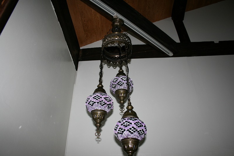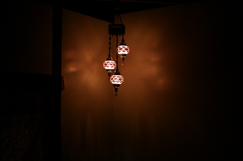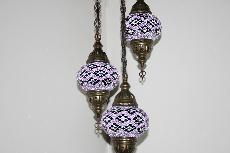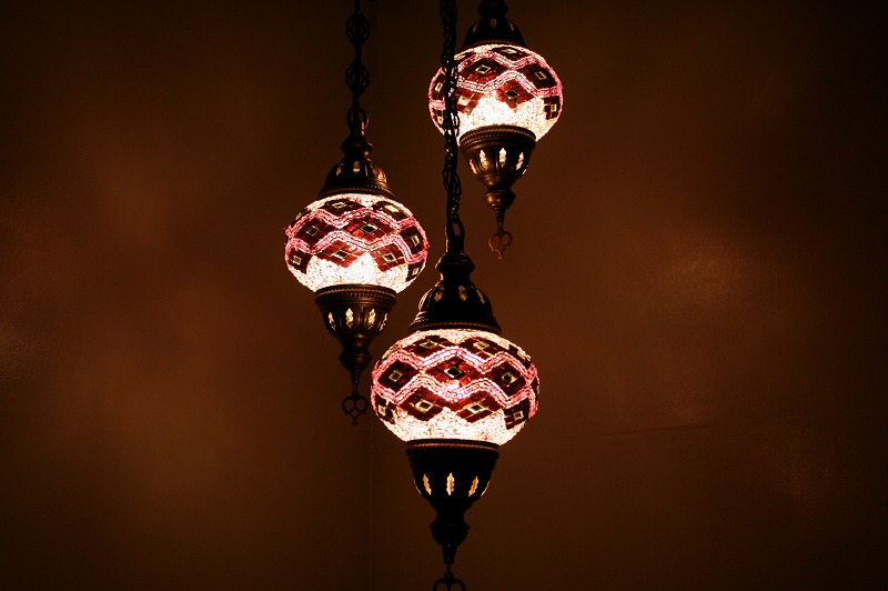 世界中のセレブも愛用、エキゾチックなトルコ製のモザイクランプシャンデリア3灯。