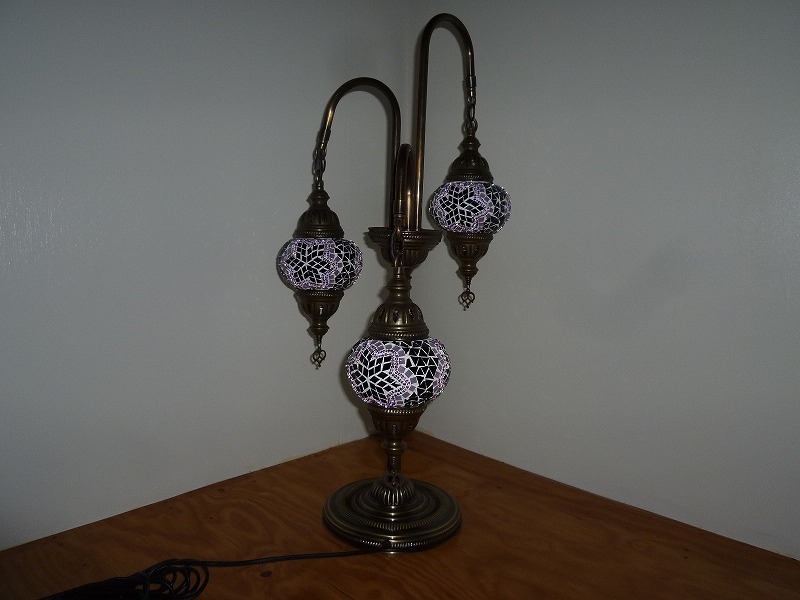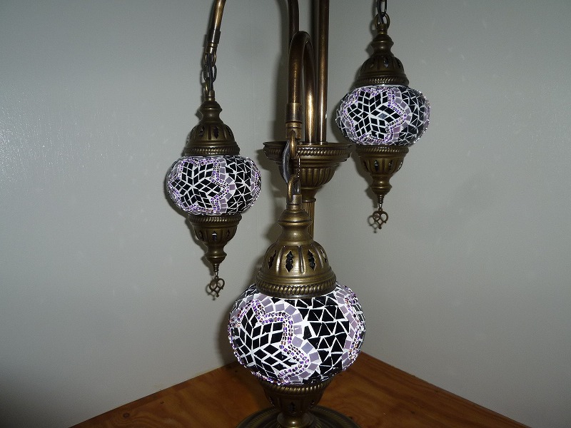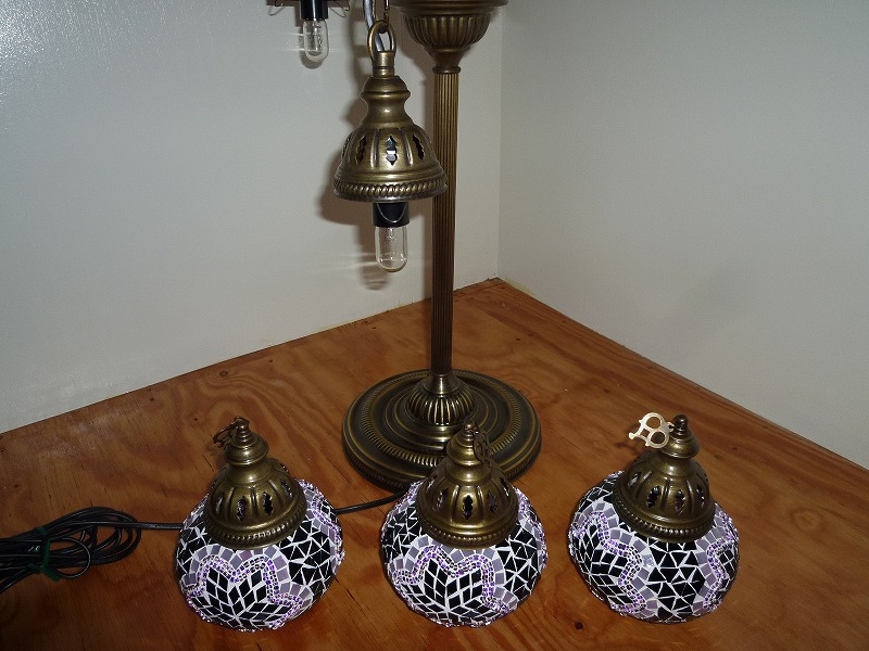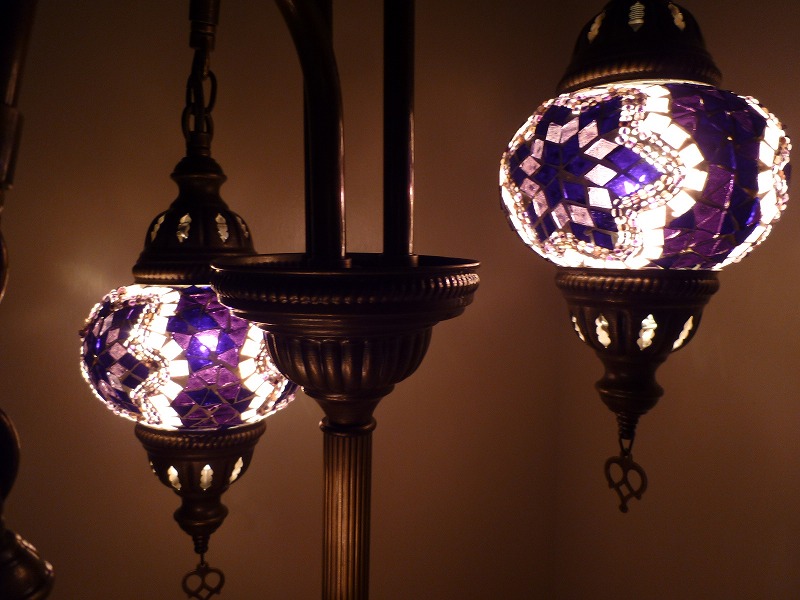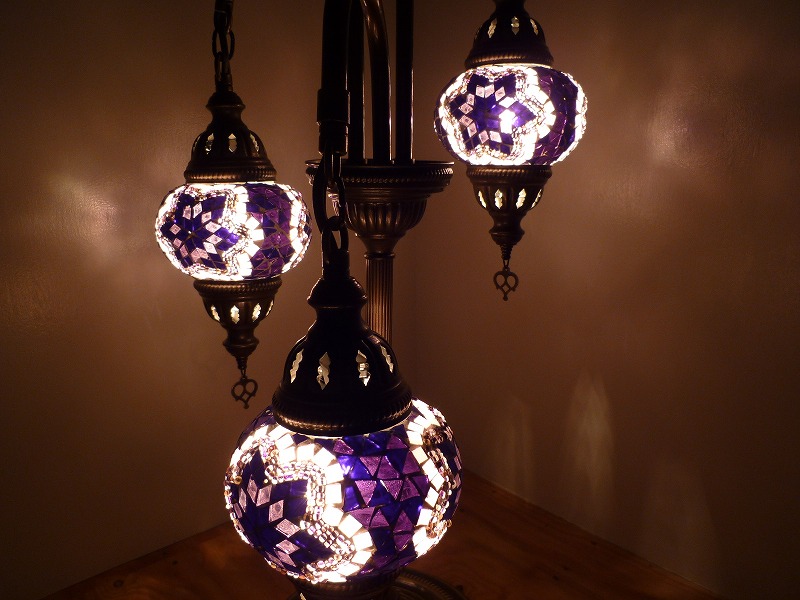 世界中のセレブも愛用、エキゾチックなトルコ製のモザイクランプスタンドシャンデリア3灯。