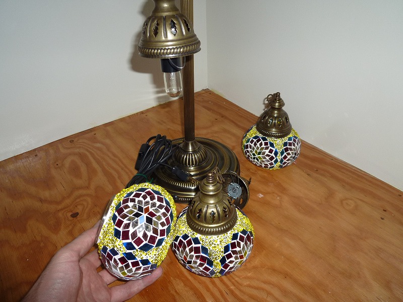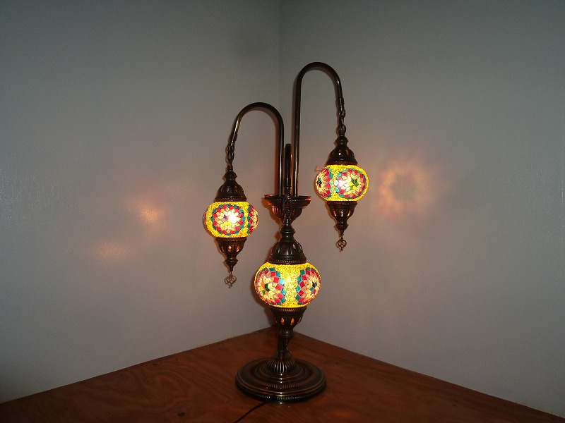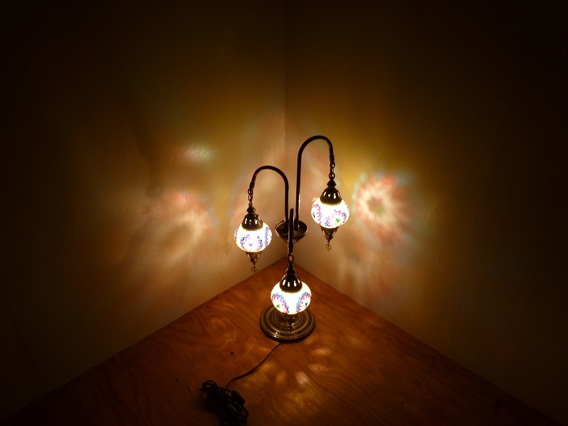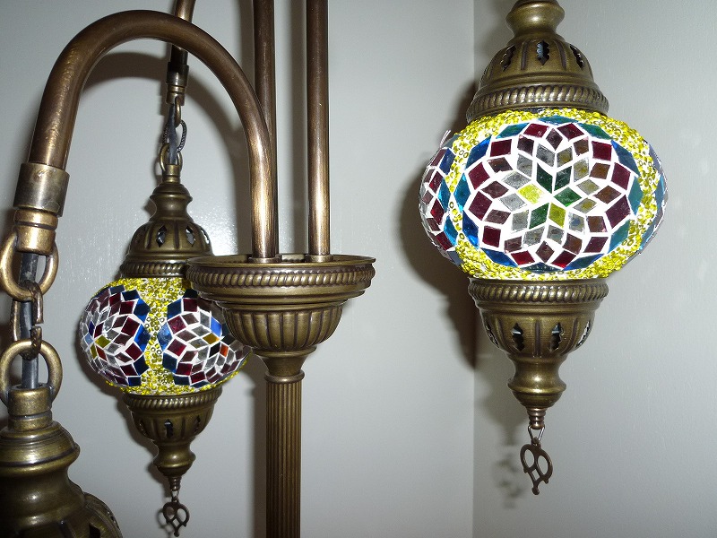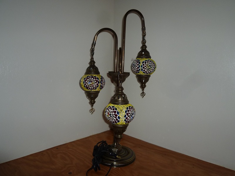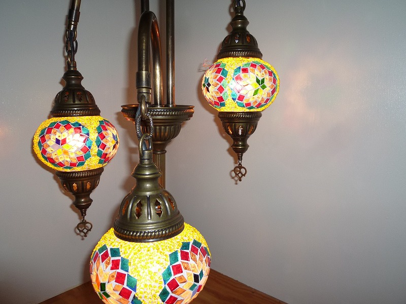 世界中のセレブも愛用、エキゾチックなトルコ製のモザイクランプスタンドシャンデリア3灯。