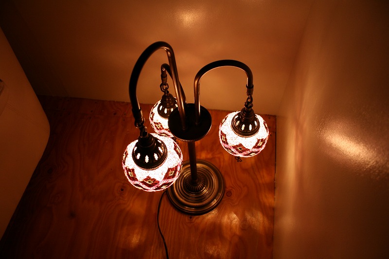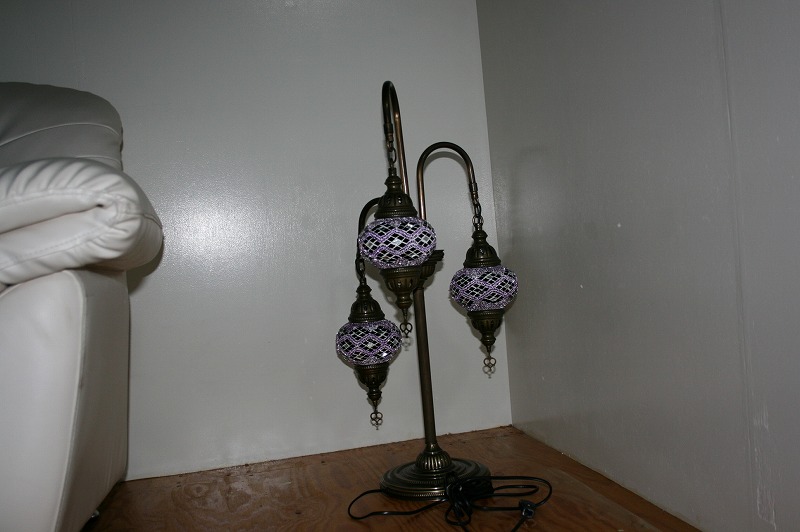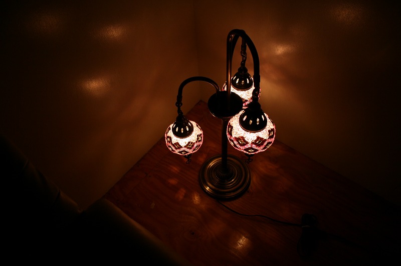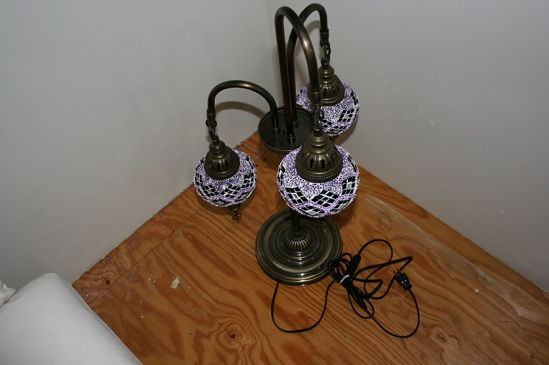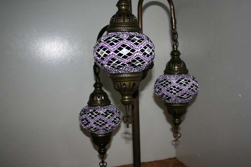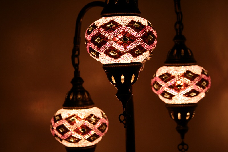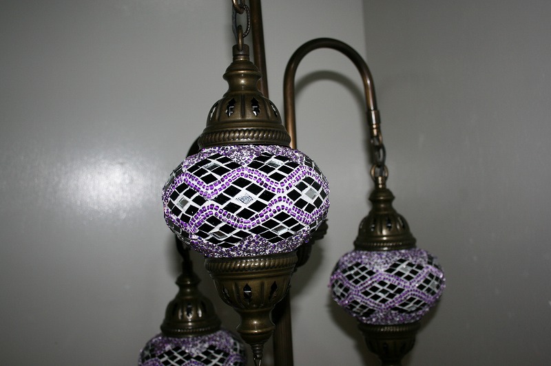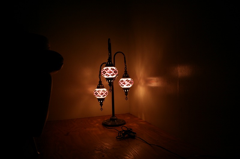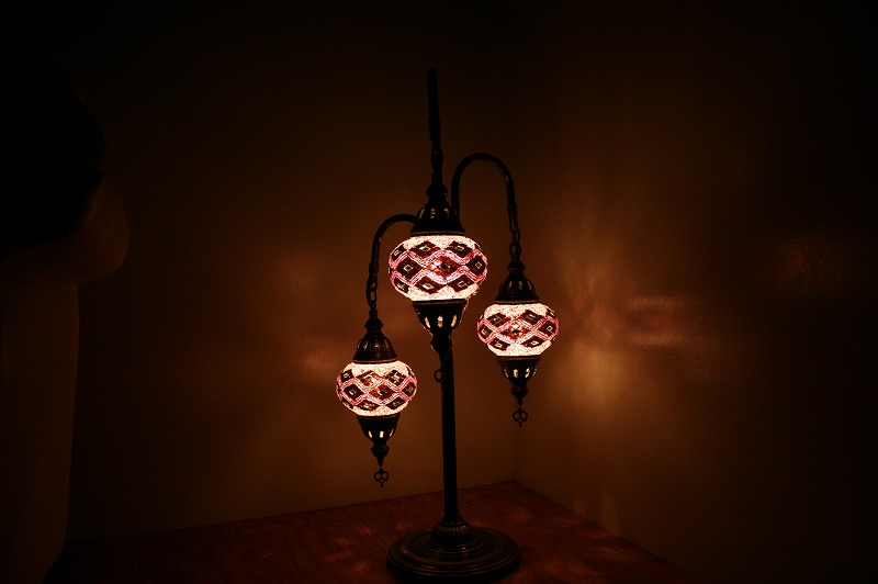 世界中のセレブも愛用、エキゾチックなトルコ製のモザイクランプスタンドシャンデリア3灯。