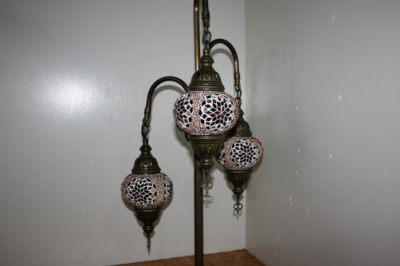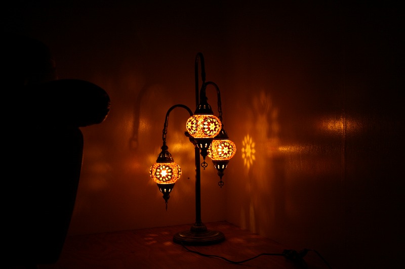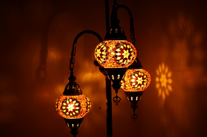 世界中のセレブも愛用、エキゾチックなトルコ製のモザイクランプスタンドシャンデリア3灯。