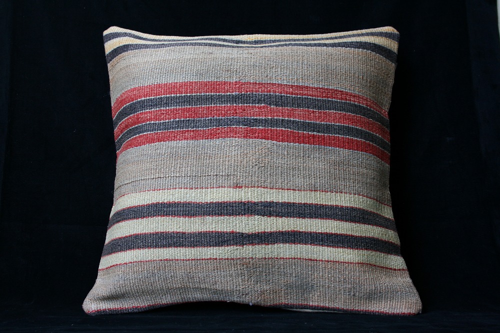 オールドキリムを使用して作られた、エキゾチックなクッションカバー。オールドキリムの素敵な部分をカットして使用されています。(表面はオールドキリム、裏側はコットンの布地です)お手持ちの家具やキリムと組み合わせてお楽しみください。このタイプのものは、なかなか数が少な く、品質・価格・品揃え共に日本国内屈指であると自負しています。