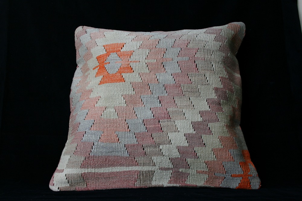 オールドキリムを使用して作られた、エキゾチックなクッションカバー。オールドキリムの素敵な部分をカットして使用されています。(表面はオールドキリム、裏側はコットンの布地です)お手持ちの家具やキリムと組み合わせてお楽しみください。このタイプのものは、なかなか数が少な く、品質・価格・品揃え共に日本国内屈指であると自負しています。