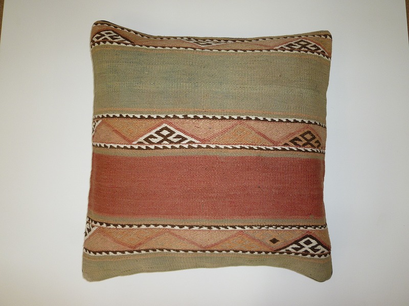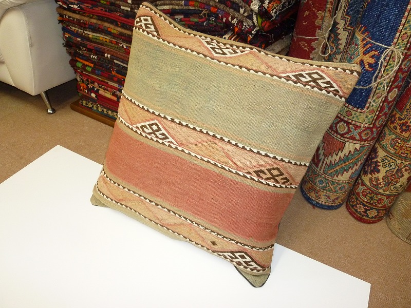 キリムクッションカバーオールドキリムを使用して作られた、エキゾチックなクッションカバー。オールドキリムの素敵な部分をカットして使用されています。(表面はオールドキリム、裏側はコットンの布地です)お手持ちの家具やキリムと組み合わせてお楽しみください。このタイプのものは、なかなか数が少な く、品質・価格・品揃え共に日本国内屈指であると自負しています。