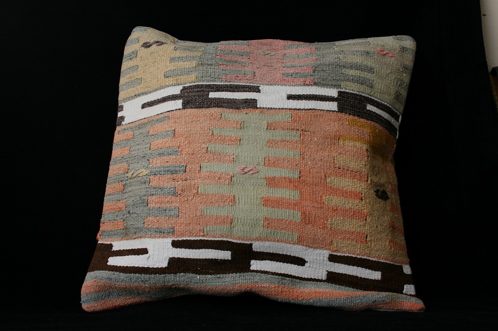 オールドキリムを使用して作られた、エキゾチックなクッションカバー。オールドキリムの素敵な部分をカットして使用されています。(表面はオールドキリム、裏側はコットンの布地です)お手持ちの家具やキリムと組み合わせてお楽しみください。このタイプのものは、なかなか数が少な く、品質・価格・品揃え共に日本国内屈指であると自負しています。