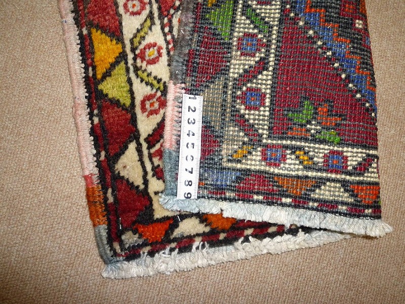 ヤストゥクは、アナトリア地方では、部屋の壁際にいくつか置き、座ってくつろぐ際に、背もたれとして使われるクッションのようなものです。現状は裏の生地を取り、1枚のカーペットの状態になっています。