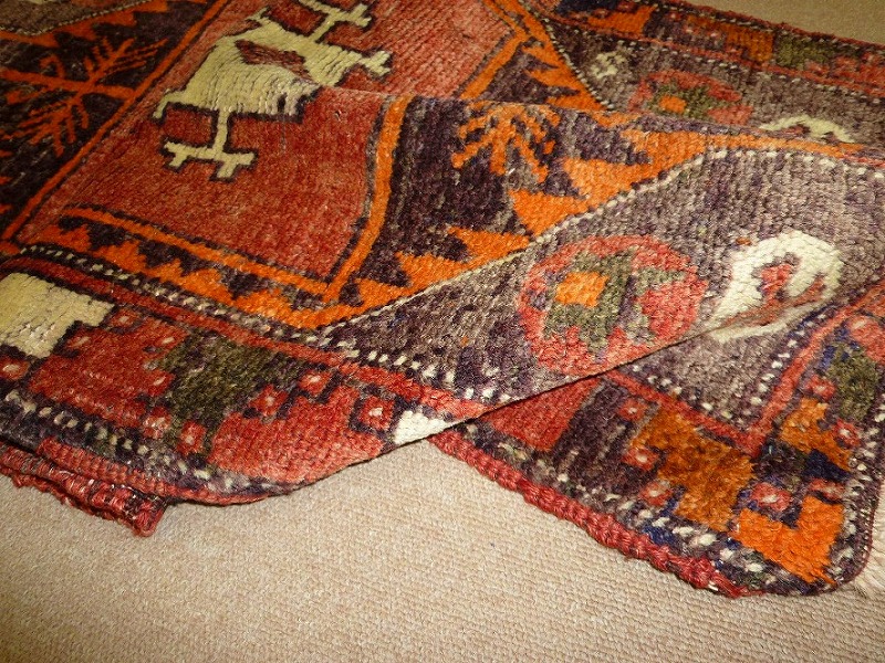 ヤストゥクは、アナトリア地方では、部屋の壁際にいくつか置き、座ってくつろぐ際に、背もたれとして使われるクッションのようなものです。現状は裏の生地を取り、1枚のカーペットの状態になっています。