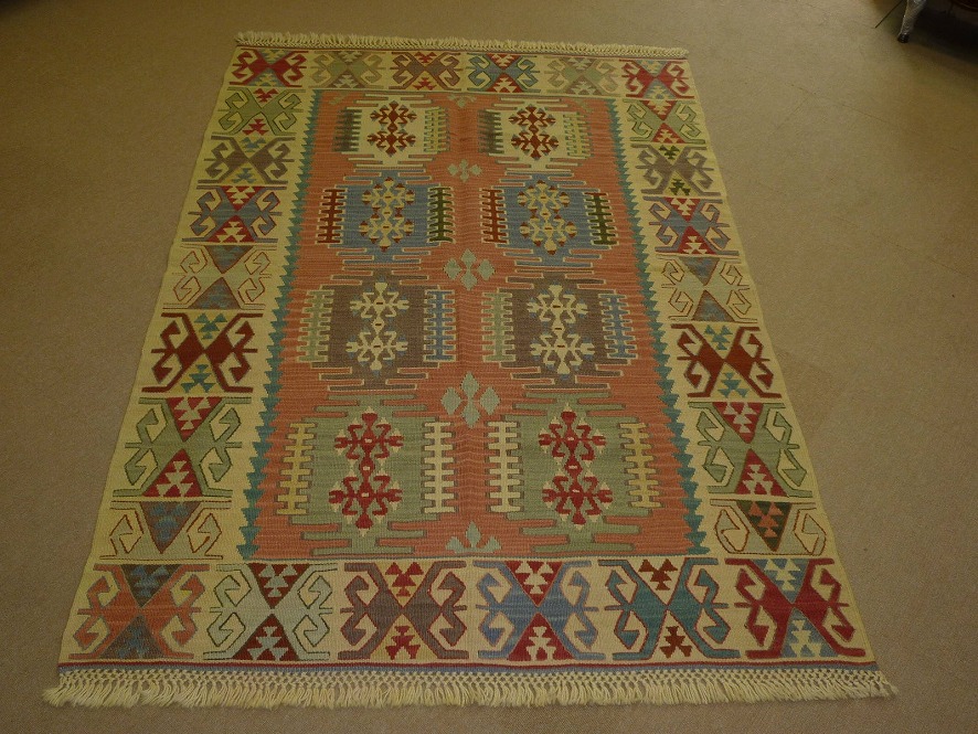 ランク上のパステルカラーカイセリキリム[190×128cm]yks-21  (yks-21)