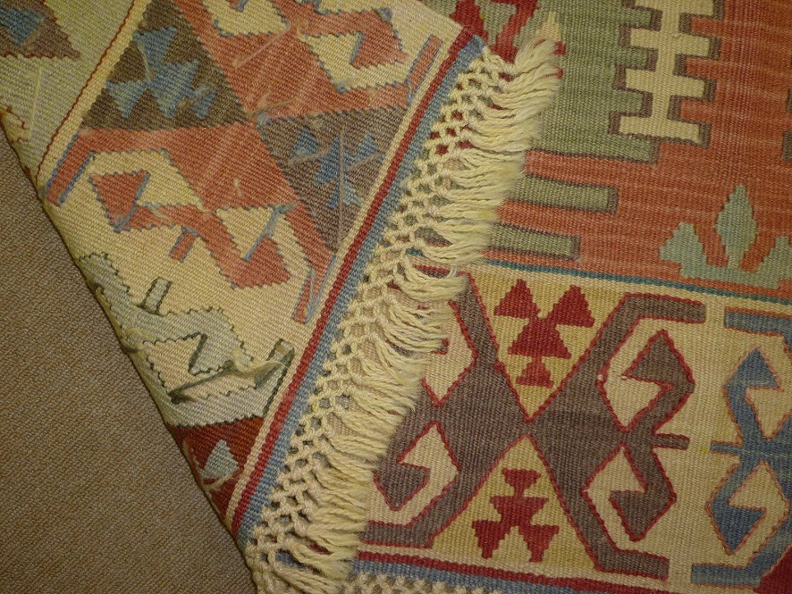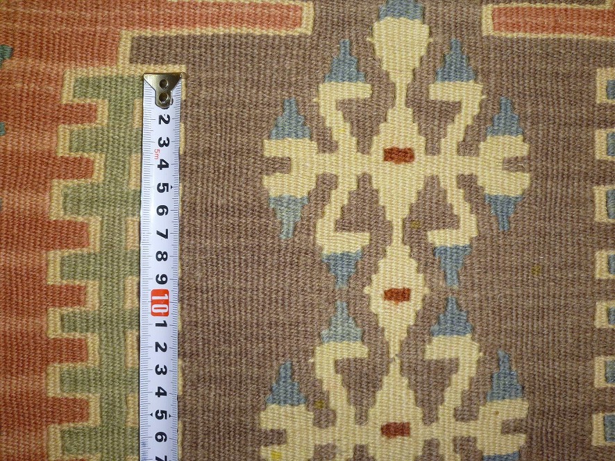 スタンダードキリムより、ワンランク上のカイセリキリム。カイセリ地方で織られているキリムです。上質のウールで織られているため、手触りもやわらか。細かなモチーフがぎっしり詰め込まれ、繊細に織られていて、古いキリムの色合いに合わせたパステル調の色合いが特徴です。機械織りとは異なり、暖かみが伝わるハンドメイド。このタイプのものは、なかなか数が少なく、品質・価格・品揃え共に、日本国内屈指であると自負しています。