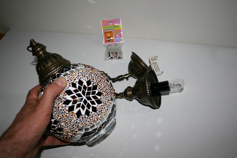 豪華で美麗なあかりを、あなたのお部屋に!古くからトルコに伝わる、伝統のデザイン、モザイクタイルを手作業で施したハンドメイド。そしてこのリーズナブルなプライス、どれをとっても大満足!お隣に差がつく、世界に1つの逸品です。ランプの付け方について