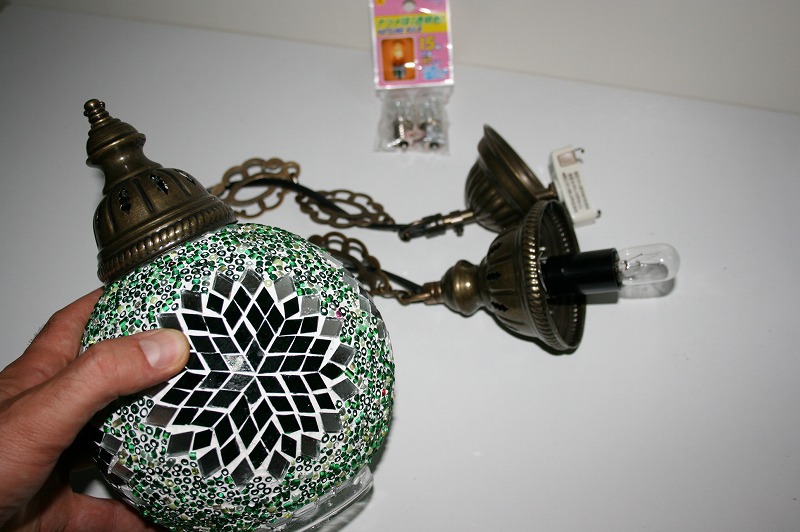 豪華で美麗なあかりを、あなたのお部屋に!古くからトルコに伝わる、伝統のデザイン、モザイクタイルを手作業で施したハンドメイド。そしてこのリーズナブルなプライス、どれをとっても大満足!お隣に差がつく、世界に1つの逸品です。ランプの付け方について