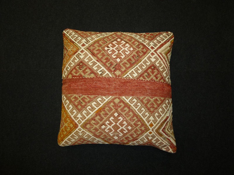 オールドキリムを使用して作られた、エキゾチックなクッションカバー。オールドキリムの素敵な部分をカットして使用されています。(表面はオールドキリム、裏側はコットンの布地です)お手持ちの家具やキリムと組み合わせてお楽しみください。このタイプのものは、なかなか数が少な く、品質・価格・品揃え共に日本国内屈指であると自負しています。
