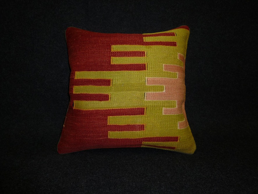 [z61]オールドキリムを使用して作られた、エキゾチックなクッションカバー。オールドキリムの素敵な部分をカットして使用されています。(表面はオールドキリム、裏側はコットンの布地です)お手持ちの家具やキリムと組み合わせてお楽しみください。このタイプのものは、なかなか数が少な く、品質・価格・品揃え共に日本国内屈指であると自負しています。