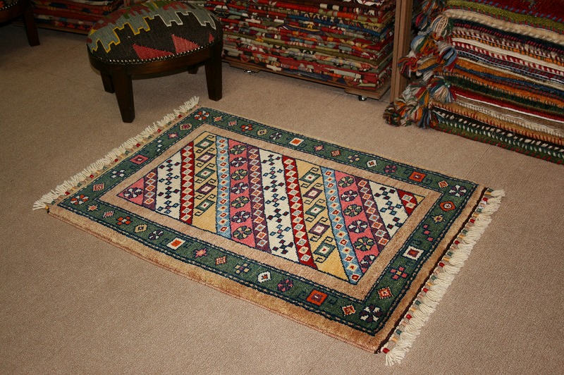 毛足が短く、お掃除が楽です。中心に多彩な模様があり、多目的な部屋に最適です。ダブル結びというトルコならではの技法です。また、現地のトルコでも日本人観光客に人気の商品です。サイドにあるふさも 細かく細工が施してあります。表面も大変柔らかく、使いこむほどに風合いを重ね遊び毛が出ないのがこの種類の絨毯の長所です。全体としては、トルコの伝統的な柄を取り入れてあります。機械織りとは異なり、暖かみが伝わるハンドメイド。サイズもいろいろあり、洗面所の足元や、玄関などにも最適です。