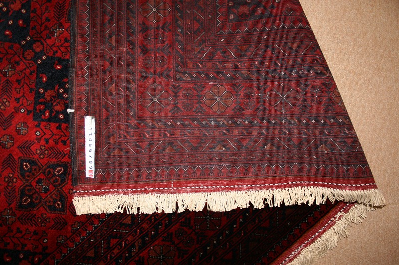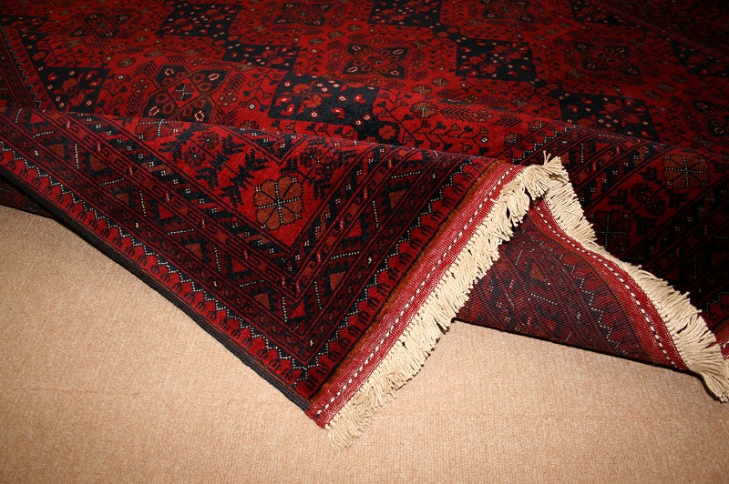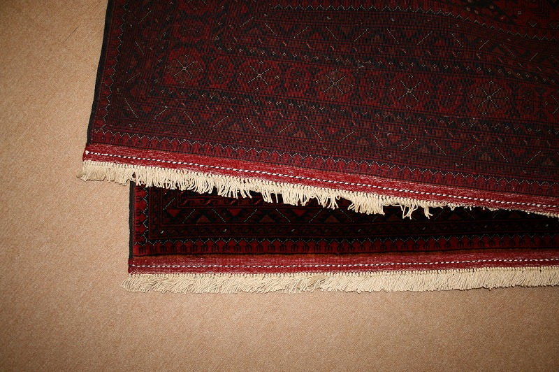 アフガニスタンのビリジックの絨毯です。織りはとても細かく、目が詰まっており、しっかりとしています。1cmあたりおよそ25個の結び目があります。ウールがとても柔らかく、シルクのような手触りと光沢があります。