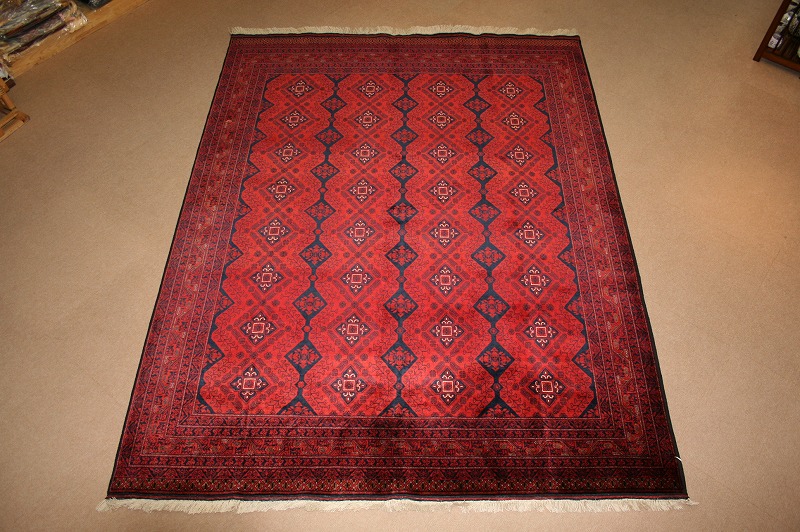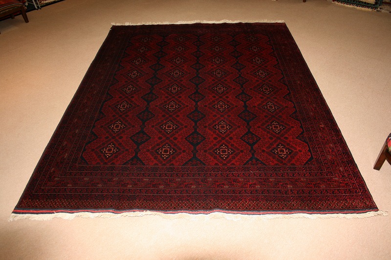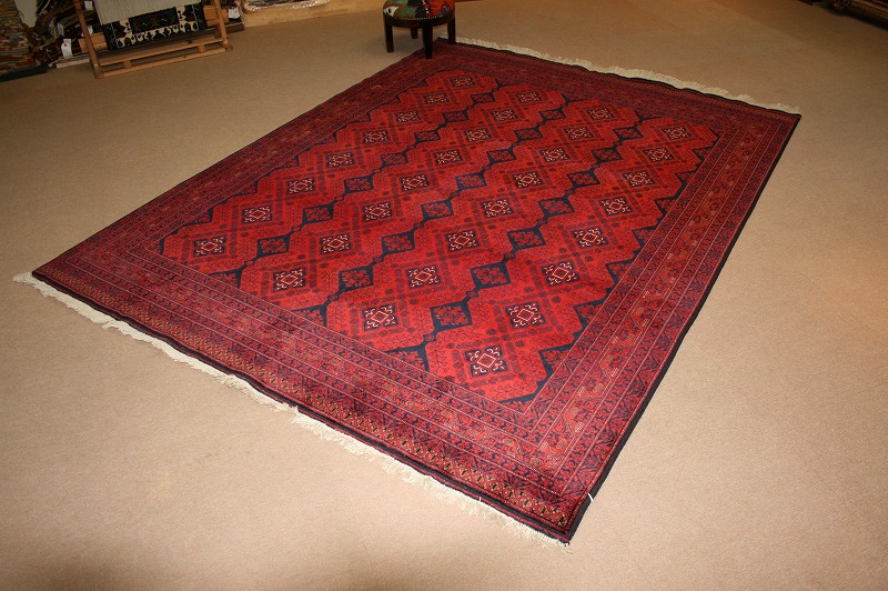 毛足が短く、お掃除が楽です。収納にも場所を取らず、採光角度により、色の変化が楽しめます。特に中心部から全体にかけての雰囲気は、豪華さを引き立てます。応接室や、和室にも最適です。ビロード風で光沢があり、ツヤのある細かな織りのアフガンのビリジック絨毯です。高級絨毯としてしても有名です。サイズも色々あります。