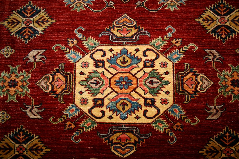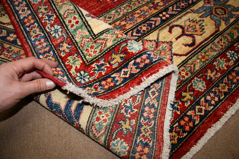 毛足が短く、お掃除が楽です。収納にも場所を取らず、採光角度により、色の変化が楽しめます。特に中心部から全体にかけての雰囲気は、豪華さを引き立てます。応接室や、和室にも最適です。ダブル結びという技法です。家具の衝撃にも強く、使いこむほどに風合いを重ね遊び毛が出ないのがこの種類の絨毯の長所です。機械織りとは異なり、暖かみが伝わるハンドメイド。サイズも色々あります。リーズナブルなプライスでご満足いただけると思います。